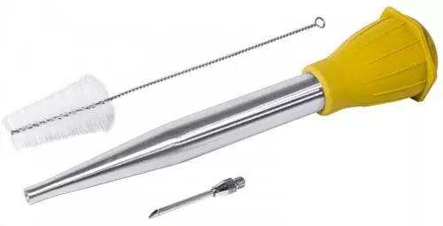 2x Bratensaftspritze aus Edelstahl 18/10, seidenmatt gebürstet, Spitze abschraubbar, schwere Profiqualität, Lieferung mit Spülbürste Volumen: 0,05 l, Durchmesser: 2,3 cm, Länge: 32 cm