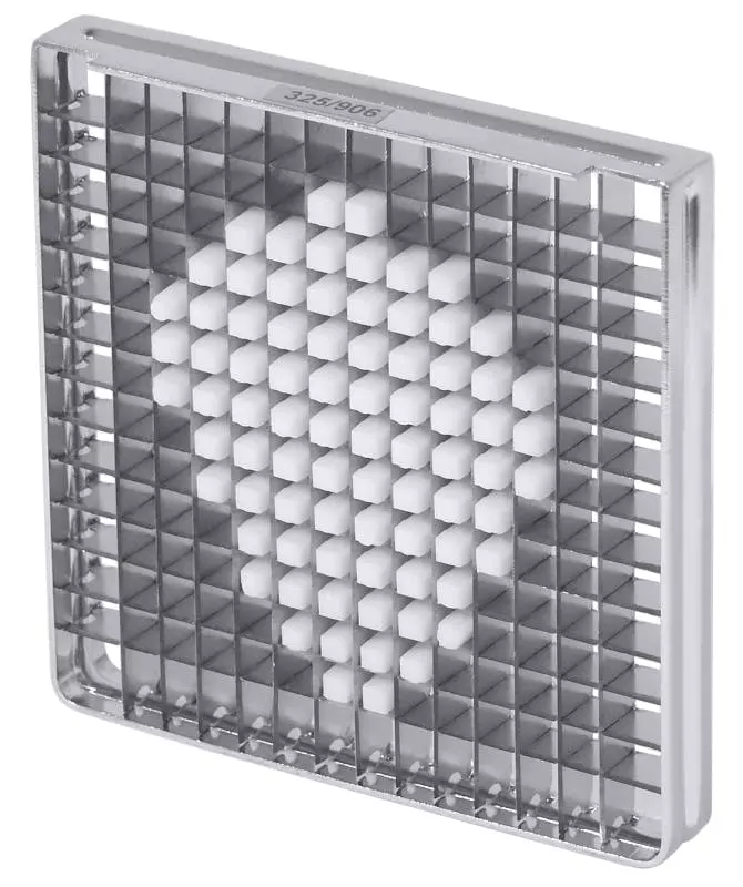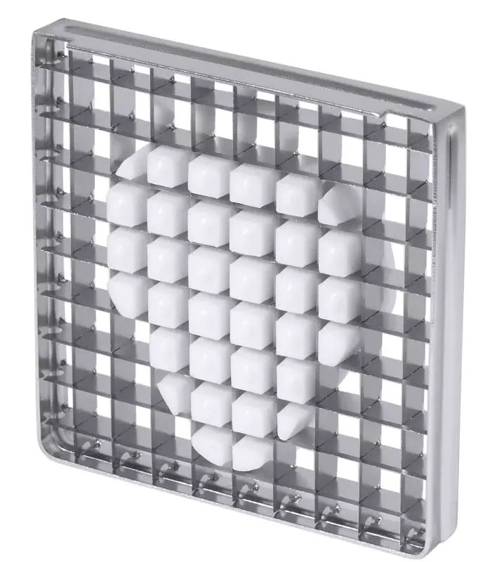 Schneideinsatz 8 mm zu Pommes frites-Schneider, ganz aus Edelstahl 18/10 (auch Bodenplatte), auswechselbare Schneideinsätze aus gehärtetem Messerstahl, spülmaschinenfest, 4 bis 5 kg Durchsatz in der Minute