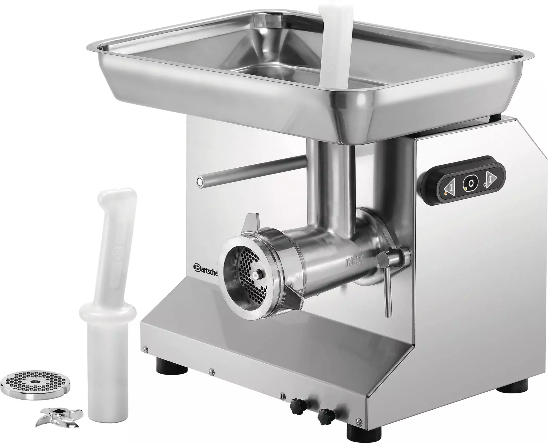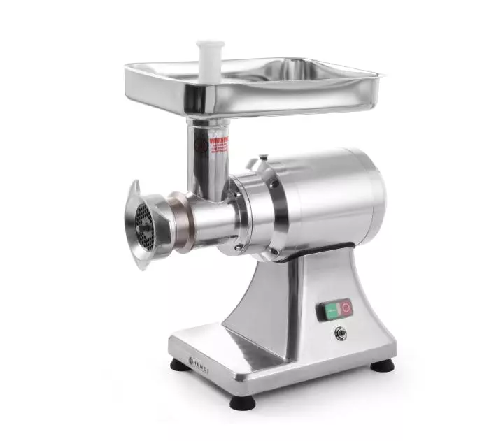 Hochwertiges Profi – Gerät zum Verarbeiten aller knochenlosen Fleischsorten. Edelstahl Einschub, Einfüllstutzen aus einer speziellen Aluminiumlegierung. Messer und Schnecke aus Edelstahl, Trichter aus Gusseisen. Inklusive Füllrohr und 2 x ⌀ 82 mm Scheiben mit Lochdurchmesser ⌀ 6 und 8 mm. Einfache Demontage zur einfachen Reinigung. Motor mit Überhitzungsschutz. Anti-Rutsch-Füße. Verarbeitungsleistung: 200-220 kg/h. Nicht geeignet für den Dauerbetrieb.