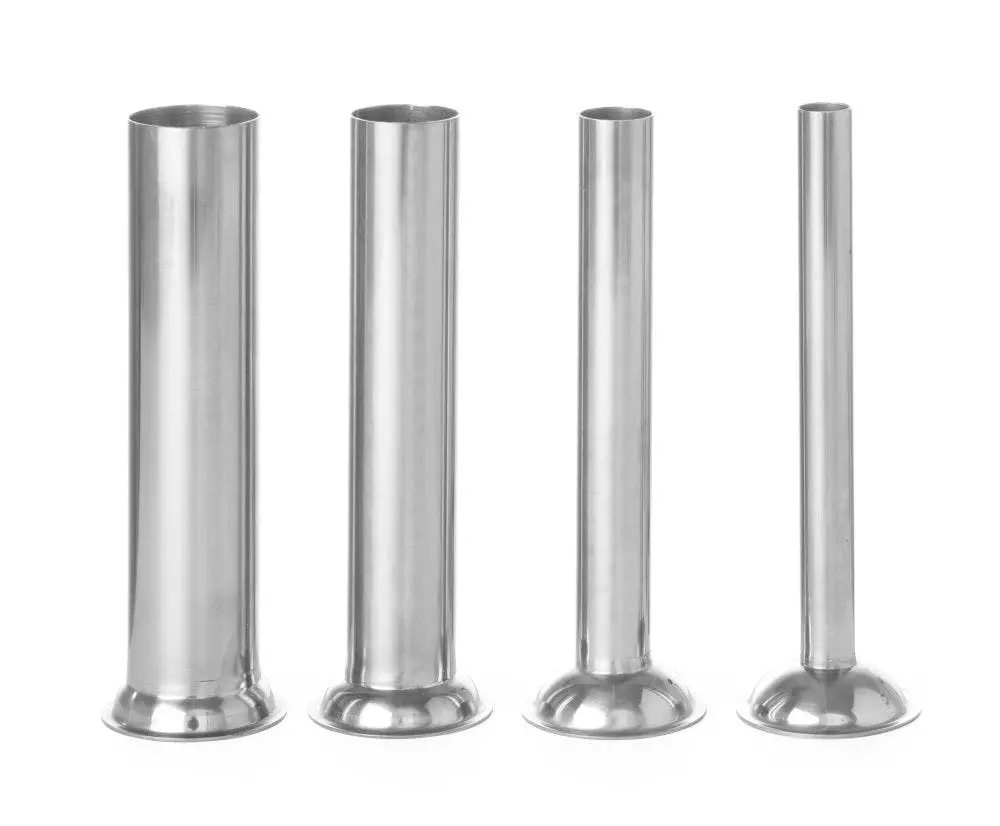 Gehäuse, Zylinder und Kolben aus Edelstahl. Ausgestattet mit 2 Geschwindigkeitseinstellungen zum einfachen Gebrauch. Der Kolben kann einfach abgenommen werden zur leichten Befüllung und Reinigung. Lager und Räderwerk aus gehärtetem Stahl, druckbeständig. Inklusive vier Edelstahltrichter, Durchmesser: 16/22/32/38 mm.