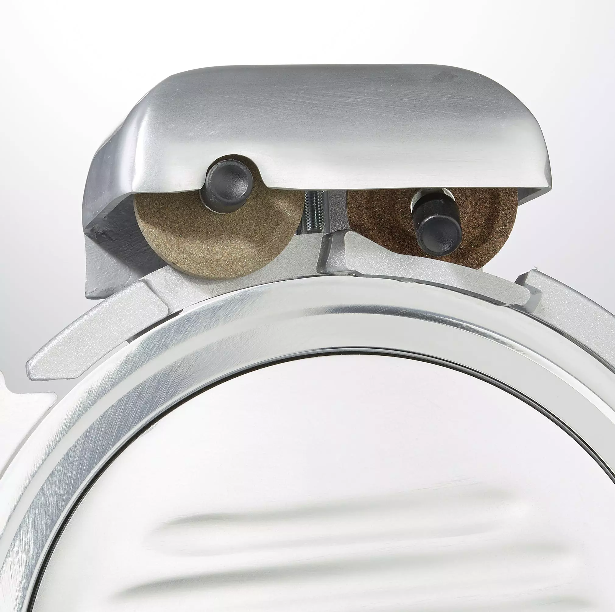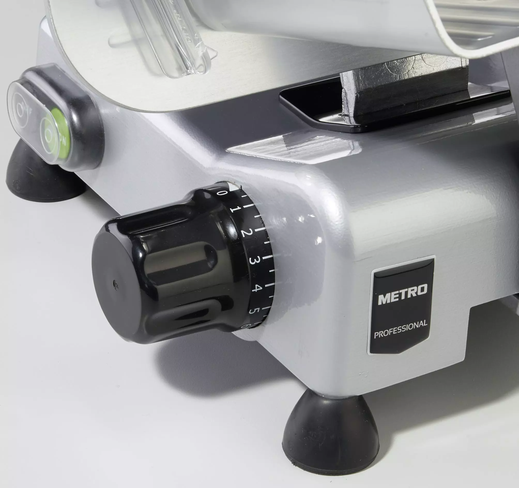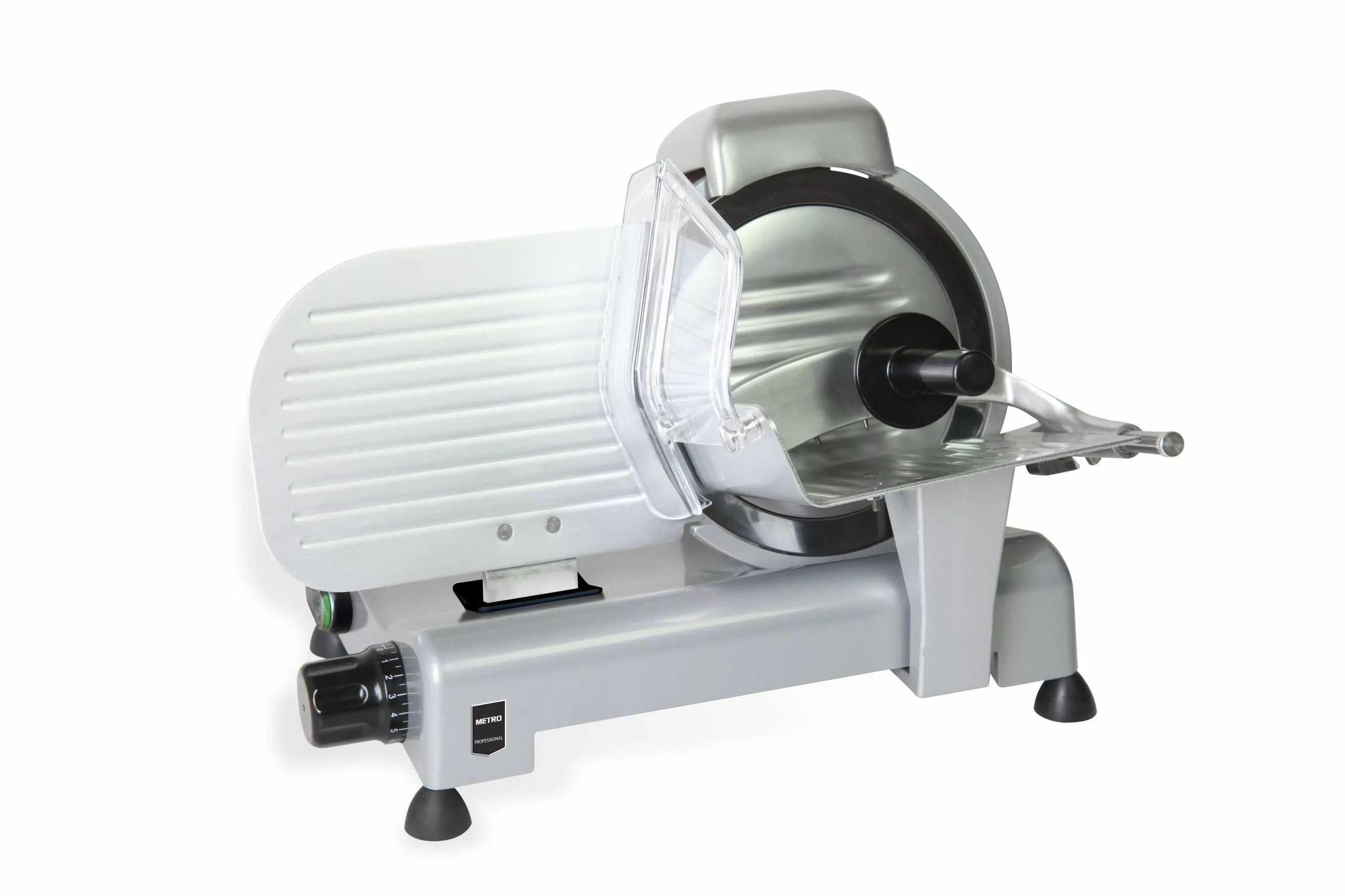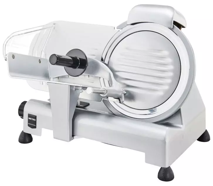 Die Aufschnittmaschine GFS2022 von Metro Professional ist universell einsetzbar. Ihre robuste Bauweise ist extra auf hohe Belastungen im Arbeitsalltag ausgelegt. Zu den üblichen Qualitätsmerkmalen zählen beispielsweise robuste Materialien und leistungsstarke Motoren. Weietere Mit abnehmbarem Drücker für eine einfache Reinigung, mit integriertem Messerschleifer, Körper aus Aluminium, robuste Bauweise für hohe Beanspruchung. Das Produkt ist leicht zu bedienen und besonders leicht zu reinigen. Weitere Produktdaten: Leistung 140 W, Ø des Messers: 22 cm, Schneide-Kapazität: 145 x 180 mm, Ø Schnitt: 145 mm, Schnittbreite: 0 – 15 mm, Messer aus Edelstahl.