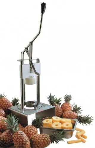 Edelstahl – Kopf und Enden der Frucht werden abgeschnitten – Frucht in Aufnahmefuß stecken – durch Hebeldruck wird die Frucht von der Schale und dem Innenkern befreit – Sicherheitssperre nach dem Heben des Hebels – Ausstech-Ø 89 mm liegt bei – ohne GN 1/1