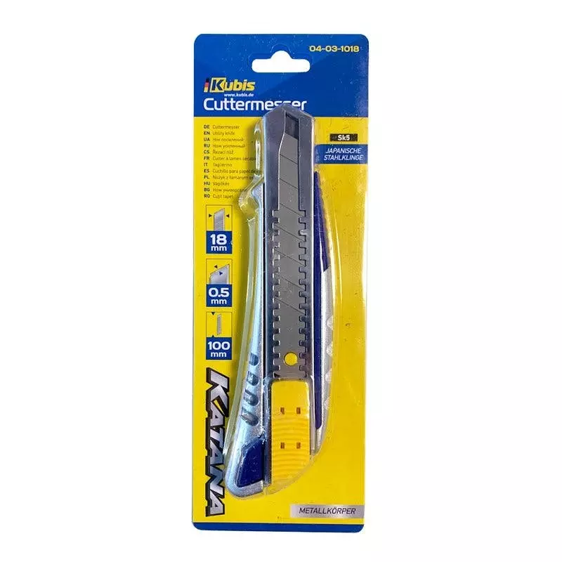 100 Stück Schneidemesser / Cutter mit einer einziehbaren Klinge SK5 18 mm KATANA, automatische Verriegelung, Metallgehäuse…