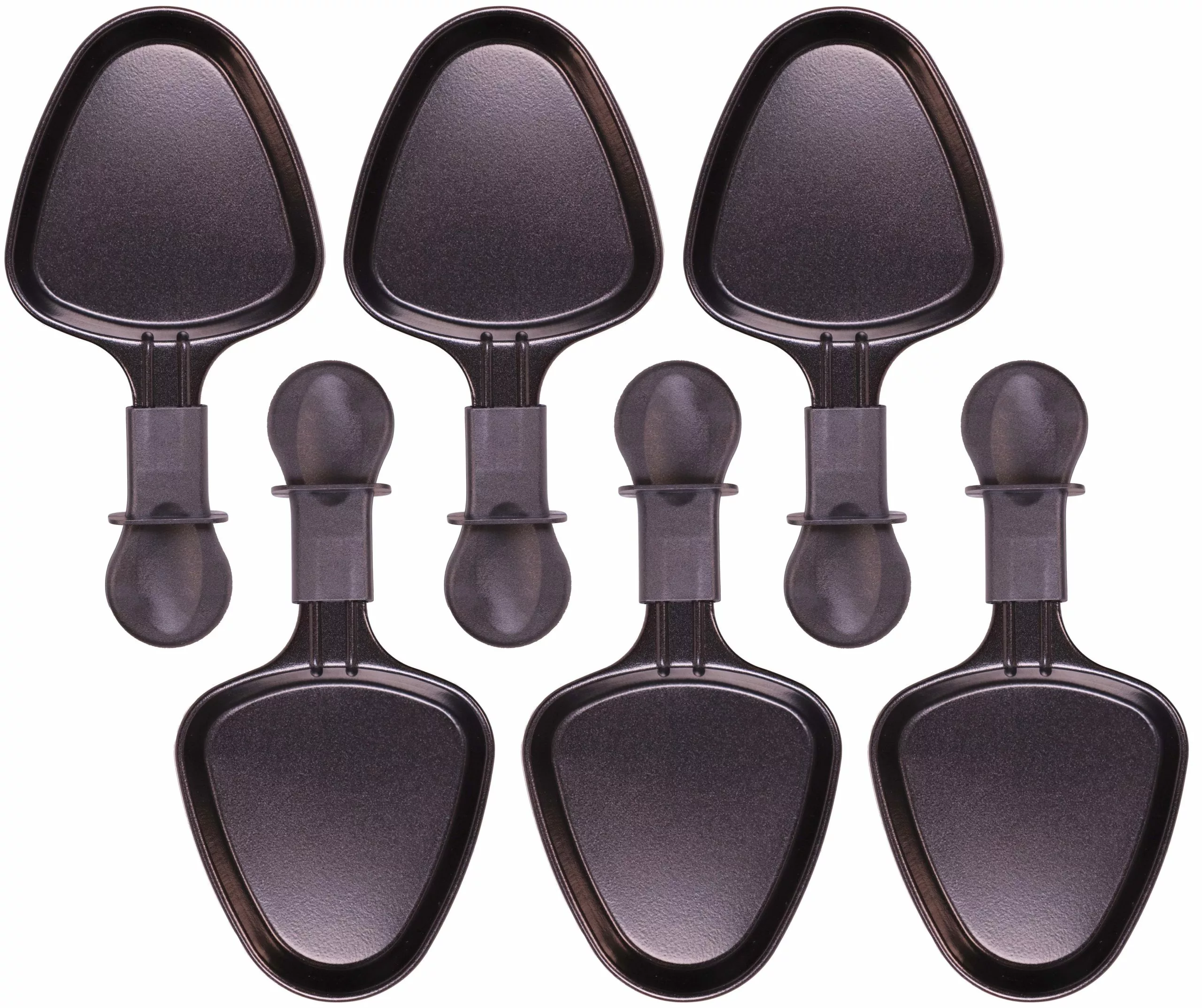 6x 27041 Raclette Pfännchen 10.5x10cm Oval Spülmaschinenfest Ersatz Kompatibel mit Klarstein/Princess/Tristar/Tefal- Spülmaschinenfest: Zur Reinigung geeignet in Geschirrspüler, Spülmaschine- Emaillierte Oberfläche, Antihaftbeschichtet- Hochwertige Produktqualität- Ersatzzubehör für Raclette Grills mit ovalen Pfännchen (Siehe Maße)- Pfannenhöhe: 1,4cm- Pfannenlänge: 10,5cm- Pfannenbreite: 10cm- Stiellänge: 9,5cm- Gesamtlänge: 19,7cm (Stiel+Pfanne)Passend für folgende Raclettes mit ovalförmigen Pfännchen:Klarstein: Taste VolcanoPrincess: 162700, 162710, 162720, 162725Tefal:- Accessimo RE151, RE160- Cheese’N’Co RE12C- Colormania RE12A, RE310, RE320- Compact Type 1064 Serie 1 RE401- Compact Type 865 Serie 1- Cristal RE160, RE16M- Deco 6 RE128- Grill Cristal- Invent Type 1178 Serie 1 RE510- Invent Type 1179 Serie 1 RE515- Invent Type 1179 Serie 1A RE511- Invent Type 828 Serie 1 RE500, RE505- Jour De Fete Type 1162 Serie 2 7817- Jour De Fete Type 1165- Jour De Fete Type 1166 Serie 3 RE225- Jour De Fete Type 825 Serie 2- Ovation Type 1068 Serie 1 RE570- Ovation Type 868 Serie 1 RE550- Simply Invent Neo RE182- Store’Inn RE320- wie Ersatzpfannen XA400102Tristar: RA-2996, RA-2996, RA-2998