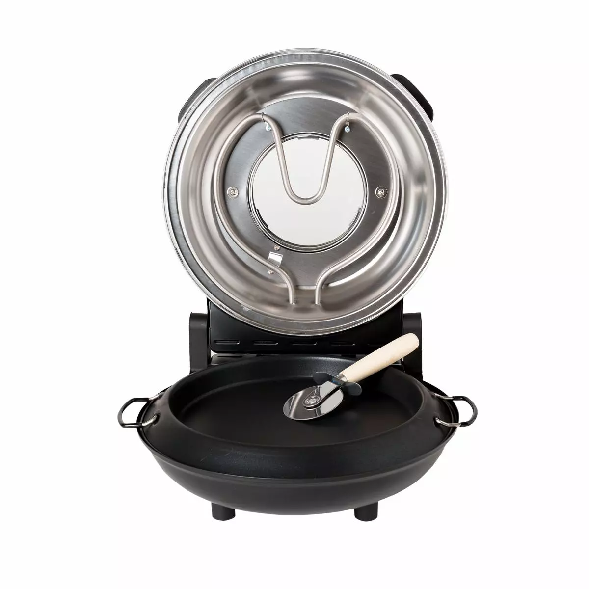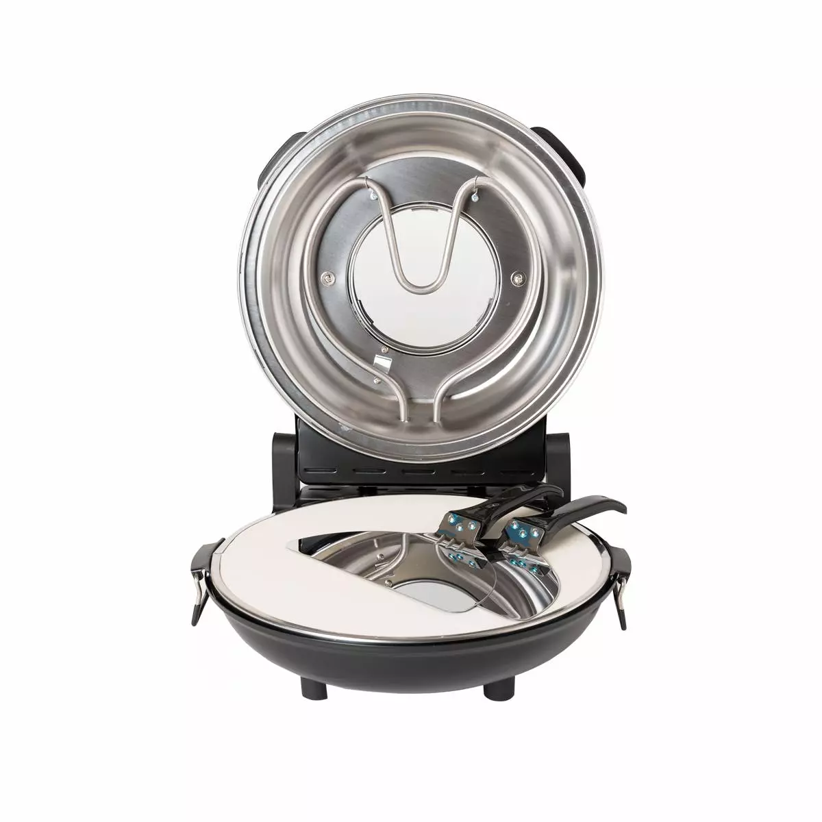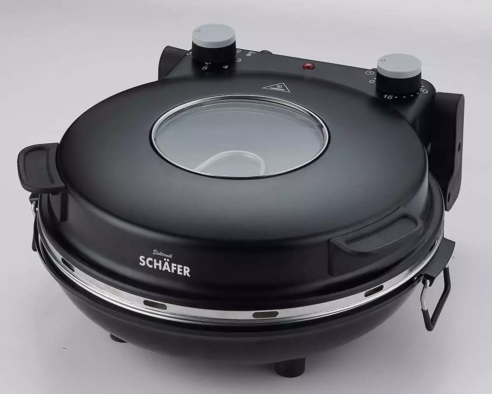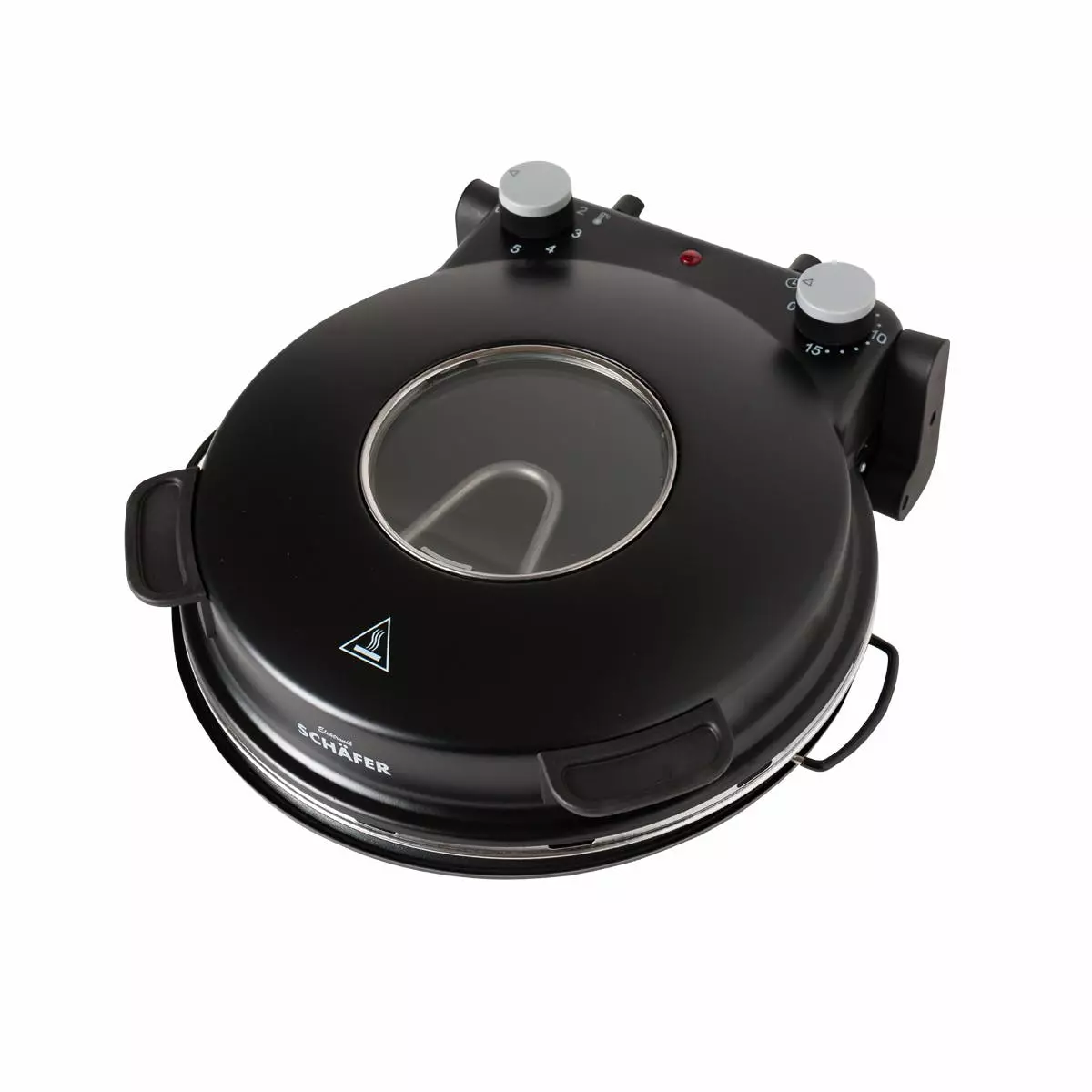 Null Schäfer Pizzamaker 32cm Mit Zubehör Express Pizzaofen 1200W Keramiksteinplatte 360-400ºC (schwarz)