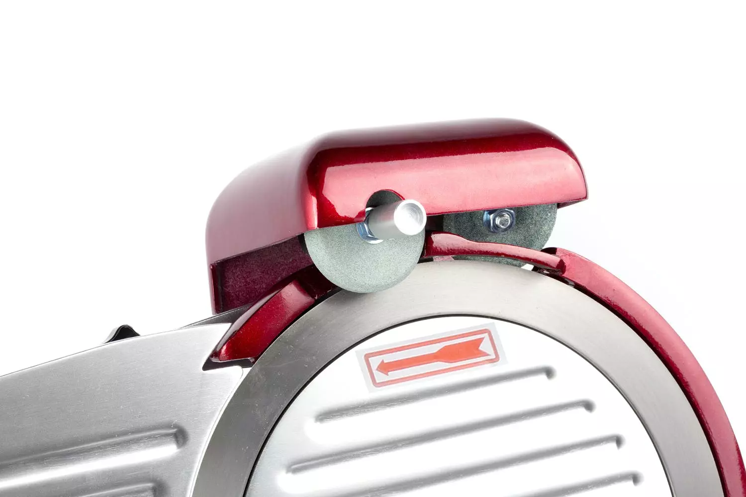 Durch die Farbgebung und den Stil ergeben Schwungradmaschine und Standfuß den Eindruck einer Einheit. Geliefert wird standardmäßig in Volano-Rot.