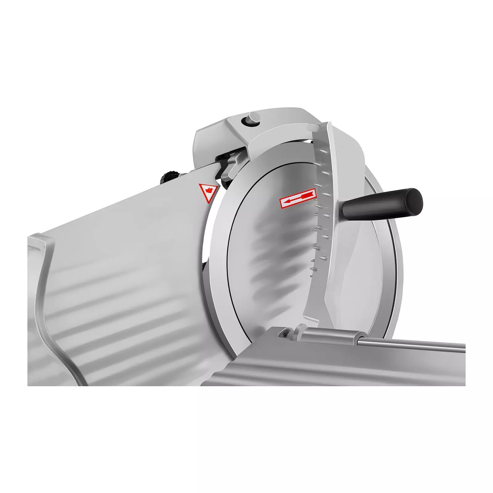 Aufschnittmaschine – 250 mm – bis 12 mm – 150 W Ob Sie hauchdünne Mortadellascheiben oder ein gutes Stück Leberkäse abschneiden wollen, mit der Aufschnittmaschine RCAM-250 schneiden Sie Wurst, Fleisch oder Käse genau in der Breite, die Sie für Ihre Speisen benötigen. Dadurch ist das Gerät ideal geeignet, um eine Brotzeit im Restaurant herzurichten oder Aufschnittplatten für ein Catering vorzubereiten.