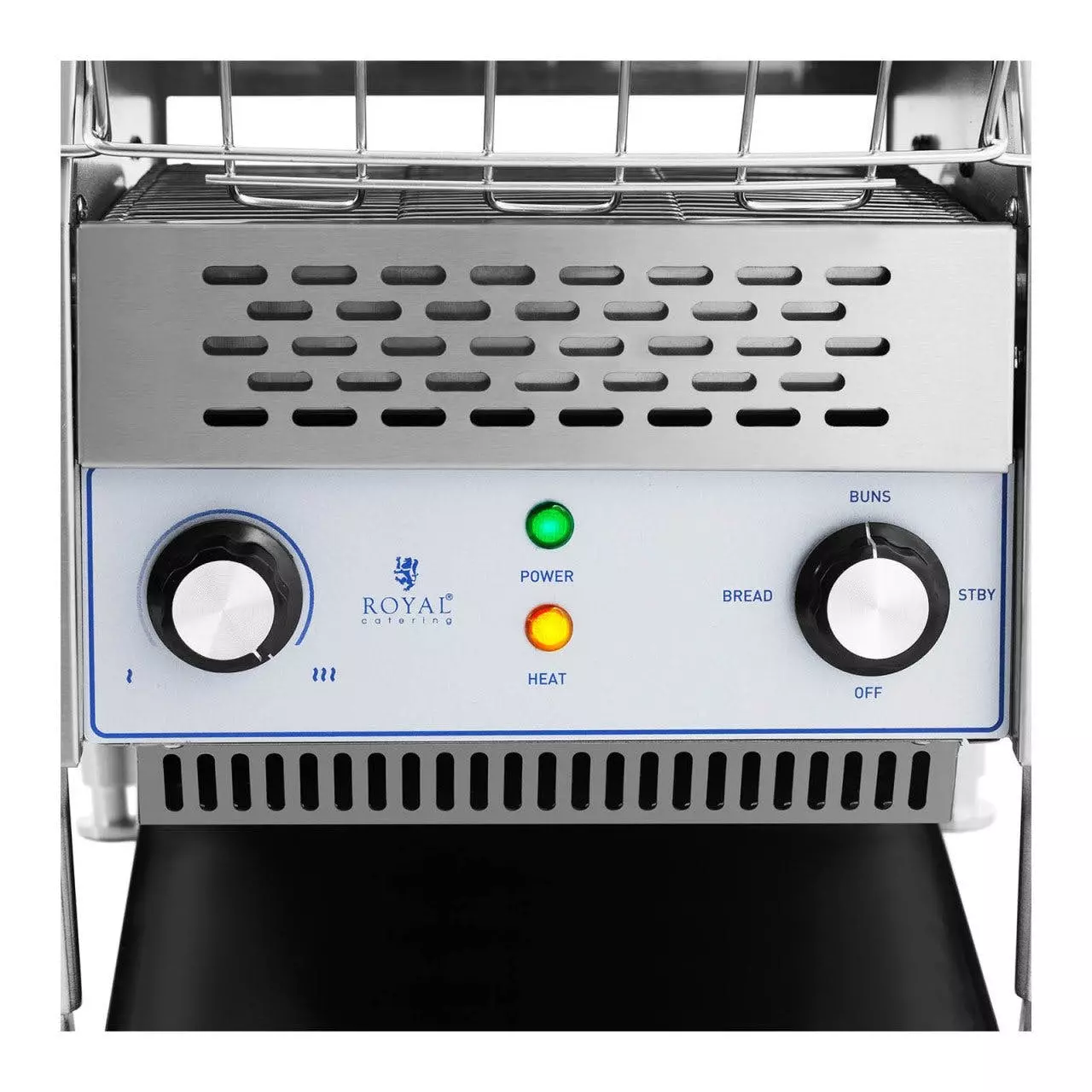 Mehr Toast mit dem Durchlauftoaster von Royal CateringDer Durchlauftoaster von Royal Catering eignet sich bestens für die Zubereitung von Toastbrot beim Brunch oder der Selbstbedienung in Restaurants, Cafés, Hotels, Jugendherbergen; aber auch für die durchgängige Zubereitung von Buns in Burgerrestaurants. Die Schiene des Gastronomie Toasters besitzt sieben verschiedene Geschwindigkeitsstufen, um die Toastscheiben oder andere Backwaren nach individuellen Wünschen zu rösten. Mit der höchsten Durchlaufgeschwindigkeit können Sie bis zu 350 Toastscheiben pro Stunde zubereiten. Mithilfe eines Schalters können Sie zwischen drei verschiedenen Modi auswählen: dem energiesparenden Stand-by-Modus, dem Modus „Buns“, bei dem nur die Oberhitze eingeschaltet wird, oder dem Modus „Bread“ mit Ober- und Unterhitze für schnelleres Erhitzen und beidseitiges Rösten von Brotscheiben. Die Arbeitsleistung von 2.200 W gewährleistet stets beste Ergebnisse der getoasteten Backwaren. Das Gehäuse des Gastronomie-Toasters besteht aus pflegeleichtem Edelstahl. Um die Reinigung zu erleichtern, verfügt dieses Modell über eine herausnehmbare Schublade. Diese fängt während des Gebrauchs alle Krümel auf und kann nach der Nutzung ganz einfach entnommen und abgespült werden. Die kompakte Konstruktion gewährleistet auch über Jahre hinweg einen sicheren Stand für Ihre Toastproduktion!Technische DetailsSpannung:230 VToastscheiben pro Stunde max.: 350 Krümelschublade: Ja Einstellung Arbeitsgeschwindigkeit: Ja Geschwindigkeitsstufen: 7Leistung: 2.200 WFunktionen: Standby, Brötchen, Brot Stromkabe: 1,4 mLieferumfangDurchlauftoaster RC-CT001, Bedienungsanleitung