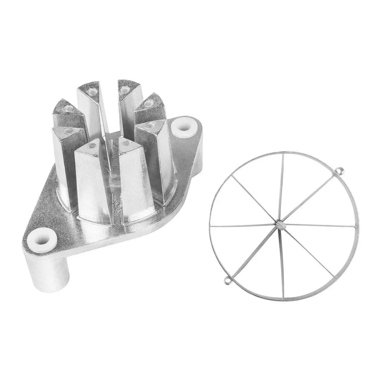 Ersatzklinge für Obstschneider. Unser Obstschneider sorgt schon in vielen Küchen von Restaurants, Kantinen und Imbissen dafür, dass Zitrusfrüchte, äpfel oder auch Kartoffeln schnell und mühelos in Spalten geschnitten werden können. Jedoch lässt auch die beste Klinge nach intensiver Nutzung an Schärfe nach. Aus diesem Grund bieten wir Ihnen die Edelstahlklinge-RCOT-8 von Royal Catering als Zubehör an. Die Klinge ist für die Verarbeitung von Obst und Gemüse mit einem Durchmesser bis zu 9 cm geeignet. Dabei wird das Schnittgut mit einer Bewegung in 8 gleich große Stücke zerteilt. Geschärfte Kanten sorgen für einen präzisen Schnitt und saubere Stücke. Dank der Verwendung von Edelstahl sind die Klingen äußerst strapazierfähig und ganz leicht mit klarem Wasser zu reinigen. -Ersatzklinge für den Obstschneider RCOT-8 -geeignet für Großküchen, Kantinen, Catering oder im Restaurant -schneidet verschiedene Obst- und Gemüsesorten in acht Teile -präziser Schnitt -aus Edelstahl -einfache Reinigung.