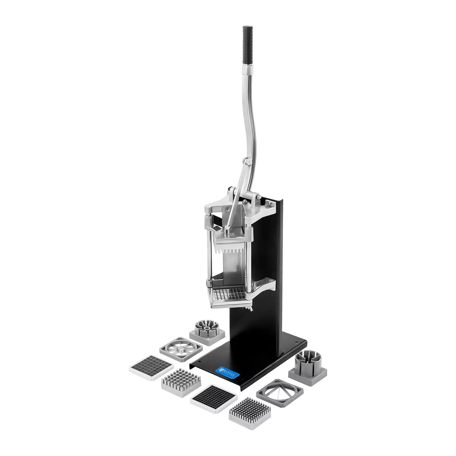 Multifunktionsschneider – manuell Zur schnellen Zubereitung von Pommes, Gemüsestiften und Obststücken gehört der Gemüseschneider RCKS-4 von Royal Catering in die Küche jeden Restaurants, Bistros oder Hotelküche. Aufgrund der 5 Messereinsätze ist die Schneidemaschine für Gemüse und Obst gleichermaßen gut geeignet und überzeugt daneben mit hochwertiger Verarbeitung und einfacher Bedienung. Der Multischneider ist komplett aus Edelstahl gefertigt und an einer speziellen Konstruktion aus Stahlblech montiert. Die Bedienung des Pommesschneiders erfolgt manuell über einen Hebelmechanismus, welcher dank des besonders langen Hebels eine hohe Kraftübertragung garantiert und somit intuitives und effizientes Arbeiten erlaubt. Um Ihren individuellen Wünschen genügen zu können, liegen dem RCKS-4 fünf Messereinsätze aus Edelstahl bei, von denen drei quadratisch und zwei rund geformt sind. Die…