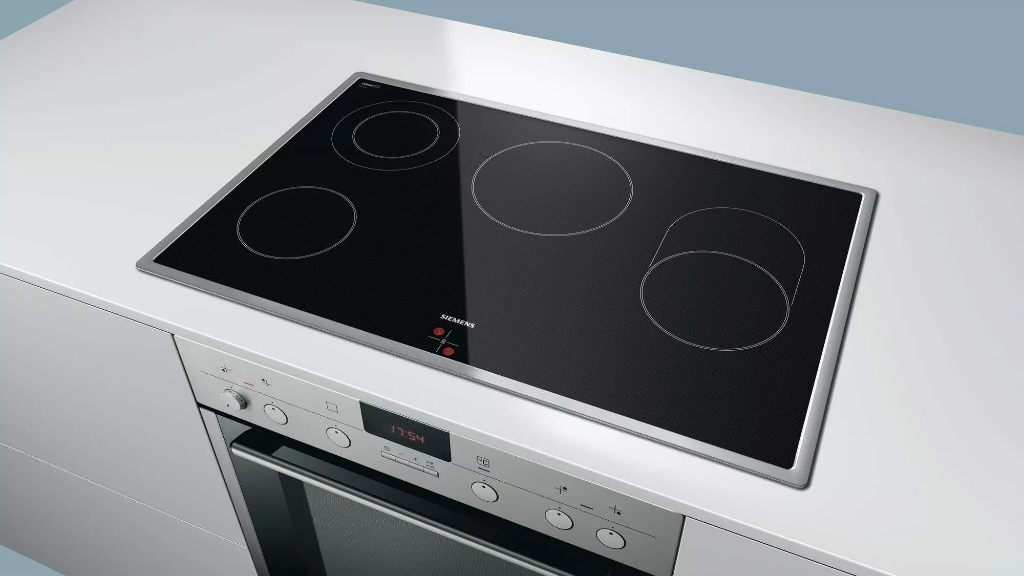 Siemens EQ523KA00. Kochfeldtyp: Keramik, Anzahl Herdplatten/Kochzonen: 4 Zone(n), Art der Oberfläche: Glaskeramik. Ofentyp: Elektrischer Ofen, Netto-Ofenvolumen: 71 l, Ofenfarbe: Schwarz
