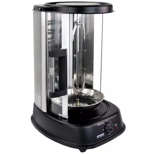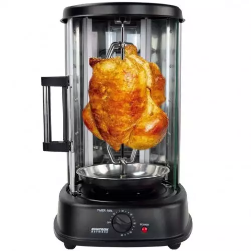 Rotisserie Dönergrill und Hähnchengrill 1500B Set als praktischer Tischgrill von Syntrox Sie haben Lust, Döner-Gerichte selber herzustellen oder Hähnchen in den eigenen vier Wänden ohne großen Aufwand herzustellen? Dafür benötigen Sie das richtige Equipment wie einen Dönergrill und Hähnchengrill. Sie brauchen nicht einmal mehrere Geräte. Es gibt nämlich aus dem Hause Syntrox Germany einen praktischen patentierten Vertikal-Multigrill, mit dem Sie sowohl Hähnchen als auch Döner grillen können. Versehen ist der hier angebotene Rotisserie Gyrosgrill mit einem Fischkorb und zwei Schüsseln, sodass Sie mit dem Grill auch gerne Fisch bei Bedarf zubereiten können. Der Döner- und Hähnchengrill 1500B ist demzufolge ein richtiges Multitalent rund um das Grillen. Aber schauen Sie selber und überzeugen sich von dem hochwertigen und sehr stabilen Rotisserie Grill mit 1500 Watt aus Metall und Schiebetüren, die Sie komplett zur Seite schieben können. Bestellen Sie sich den Dönergrill von Syntrox und profitieren Sie schon bald von der einfachen und schnellen Zubereitung. Gesundes Grillen leicht gemacht mit dem Dönergrill Legen Sie viel Wert auf gesundes Grillen fast ohne Fett, haben Sie mit dem patentierten Gyrosgrill von Syntrox Germany das richtige Produkt gefunden. Der Dönergrill und Hähnchengrill ist so gestaltet, dass das Grillgut nicht im eigenen Fett schmort. Das Fett tropft dank der Vertikalstellung direkt ab, sodass Hähnchen und Fleisch gar nicht weiter in Berührung damit kommen. Besonders fettarm wird mit dem Grill also gegrillt. Öl und Butter kommen im Prinzip nur zum Verfeinern der Köstlichkeiten zum Einsatz. Allgemein ist der Grill optimal geeignet für: Fisch Fleisch Brot Geflügel Sie können die verschiedensten Köstlichkeiten herstellen und so zu einem angenehmen und gemütlichen Abend mit Freunden und Bekannten beitragen. Haben Sie solch einen Dönergrill zur Hand, kann der Abend nur gelingen. Sie werden staunen und von dem tollen Ergebnis, was der Tischgrill mit sich bringt, begeistert sein. Viele weitere Dönergrills auswählen Vielfalt pur heißt das Zauberwort im Shop von Syntrox Germany. Sie finden in dem Online-Shop viele verschiedene Grills für Hähnchen, Fleisch und andere Köstlichkeiten vor. Richtige Multitalente zum Grillen, Backen und Schmoren stehen zur Verfügung. Falls Ihnen der hier angebotene Gyrosgrill doch nicht zusagt, können Sie sich beispielsweise für ein anderes Modell entscheiden. Die Auswahl ist riesig, sodass es möglicherweise gar nicht so einfach fällt, sich zu entscheiden. Sie finden in unserem Syntrox Shop noch viele weitere Haushalts-Artikel und Produkte für die Küche vor. Vielleicht benötigen Sie einen Backofen oder eine Dunstabzugshaube. Oder wie wäre es mit einer Fritteuse oder einer Küchenmaschine? Auch Kühlschränke, Staubsauger und Waschmaschinen werden Ihnen in verschiedenen Varianten und Ausführungen zur Disposition gestellt. Stöbern Sie in Ruhe, entdecken Sie das Sortiment und bestellen sich anschließend den Dönergrill, Mixer oder andere Produkte online bei Syntrox. Eigenschaften: Auffangschale aus Edelstahl Mittelspieß für Fleisch und Geflügel 230 Volt ~ 1500 Watt Leistung beleuchteter Schalter für Ein und Aus Massive Bauweise (Metall) – sehr stabil Höhe ca. 45 cm Durchmesser ca. 30 cm Bedienungsanleitung incl. Rezepte Fischkorb + zwei Zusatz-Schüsseln, in der Variante : mit Zubehör Achtung: Der Dönergrill wird ohne Fleischkarussell und Spieße geliefert