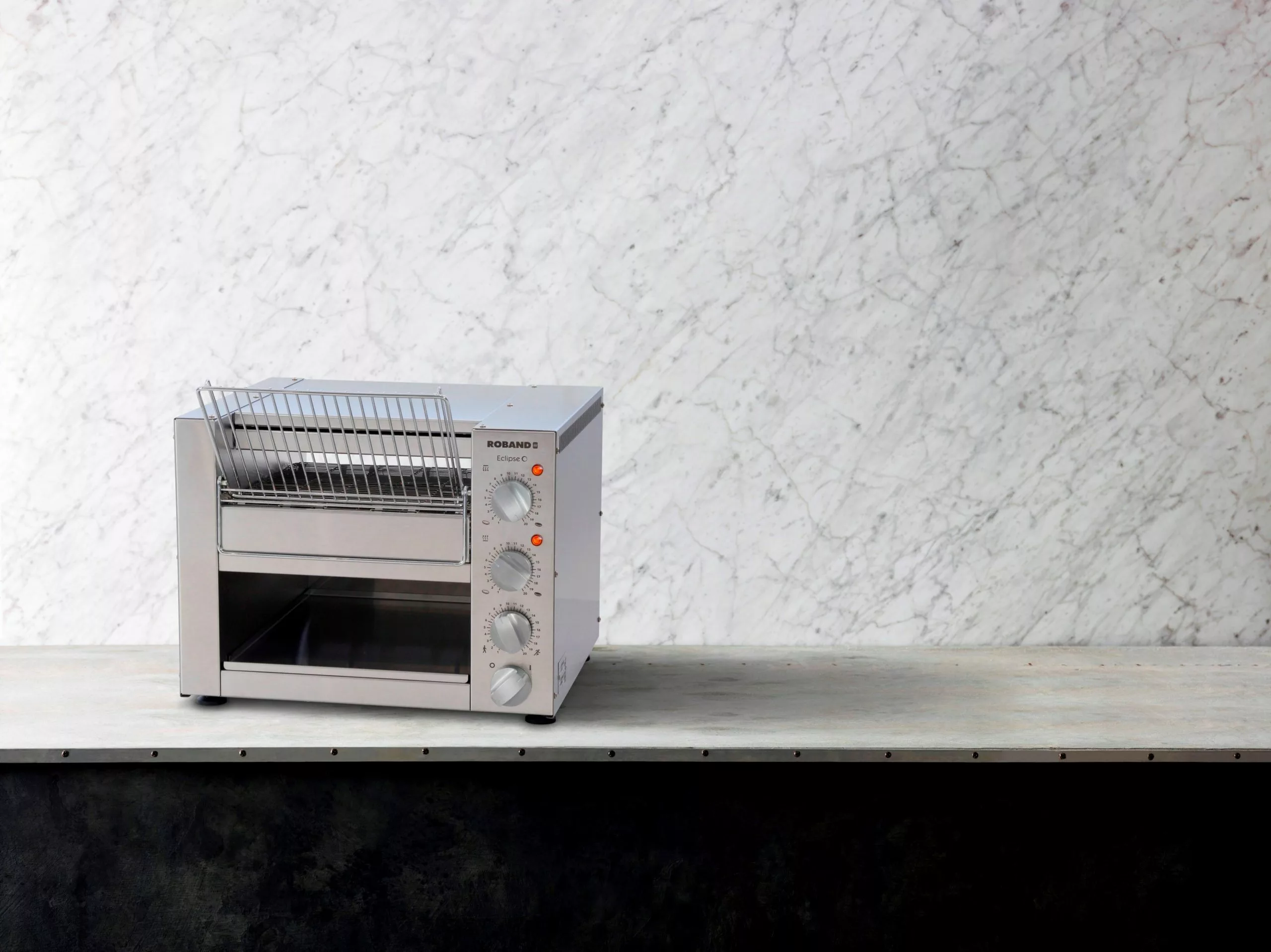 Tischbackofen aus schwarz lackiertem Stahl.