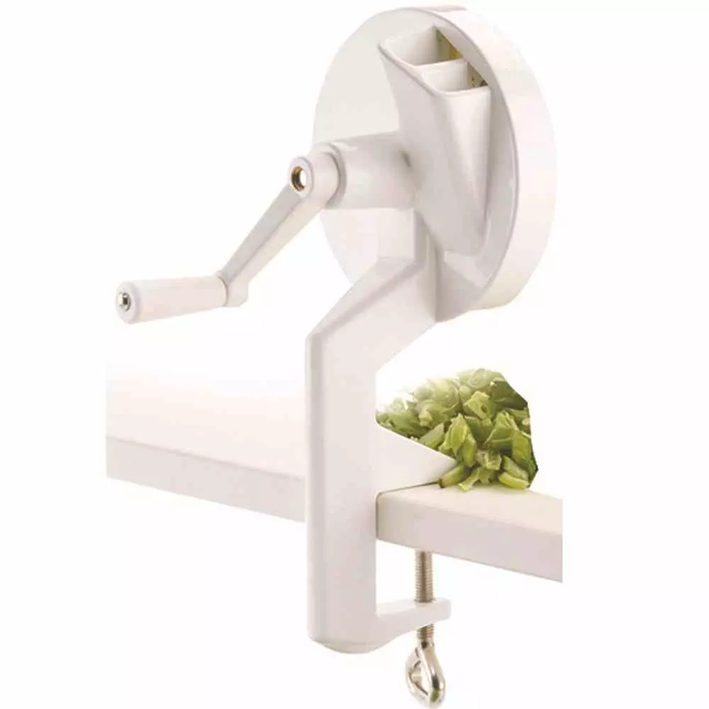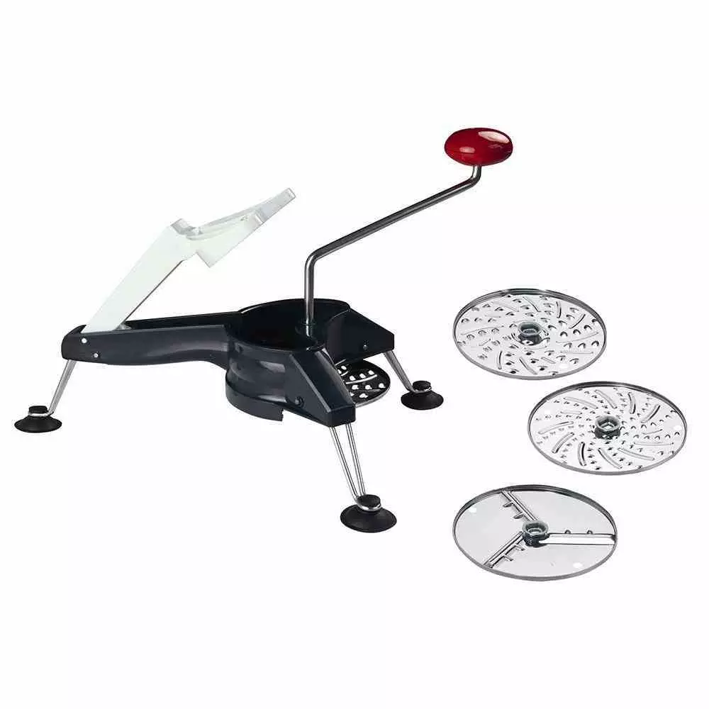 - mit 3 Schneidscheiben aus Edelstahl zum Schneiden, Reiben, Hobeln